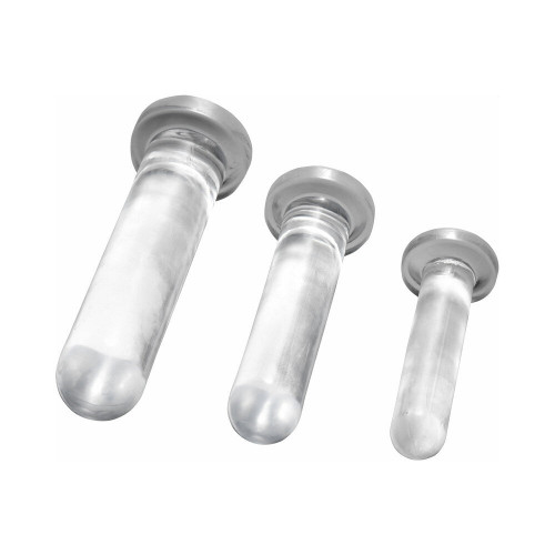 Experience new levels of comfort with this three-piece dilator set. Each one is crafted with a flexible, smooth surface that feels gentle while offering just the right firmness for comfortable stretching. With graduated sizing, you can easily advance at your own pace to find the fit that''s best for you. Made from premium phthalate-free TPE, these pieces are built to last and provide assurance with every use. Featuring suction cup bases, they stay securely in place, making exploration easy and convenient while giving you full control. Stretch and train your backdoor to accommodate a larger size at your own pace, speed, and comfort. Three Graduated Sizes: Start small and work your way up to large sizes as you train your backdoor for bigger toys! Flexible Dilators: These smooth, round-head dilators are flexible and firm for gentle insertion, stretching, and play. Suction Cup Base: Free up your hands when you use the suction cup base to firmly secure it in place. Body-Safe TPE: TPE is a quality, body-safe, phthalate-free rubber that makes it flexible and durable. Note: Do not use with oil-based lubricants. Measurements:Small: 6.3 inches overall length, 5.8 inches insertable length, 1.2 inches widest insertable diameterMedium: 7.9 inches overall length, 7.4 inches insertable length, 1.6 inches widest insertable diameterLarge: 9.8 inches overall length, 9.2 inches insertable length, 2 inches widest insertable diameter