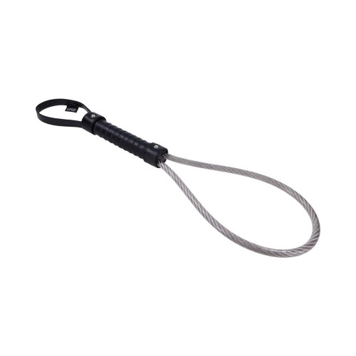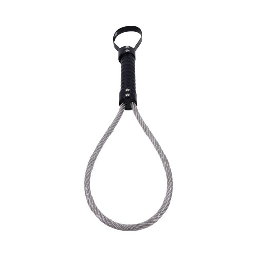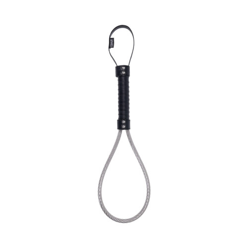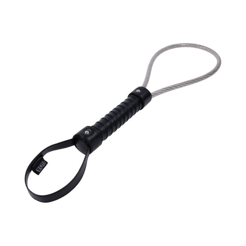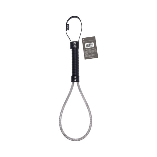 Impact refined. Obedience amplified. The Edge Metal Loop Spanker delivers a sharp, resonant strike that demands instant attention. Built for players who crave precision and intensity, this tool features a black PU-wrapped handle with silver grommet detailing and a faux leather wrist loop for secure control. Its smooth, clear vinyl-coated loop encases a sturdy steel wire core, offering slight flex while maintaining punishing structure. The loop lands with a cutting swat that bites harder than a traditional paddle, echoing with that unmistakable rug-beater crack. Designed to withstand heavy, repeated use, the Edge Metal Loop Spanker brings sting, sound, and absolute command to every session. Black faux leather-wrapped handle and wrist loop for secure grip and control Vinyl-coated steel wire loop delivers sharp, stinging impact with slight flexibility Built for heavy, repeated impact without losing shape Materials: 45% Steel, 30% PU, 10% PVC, 10% PP, 5% Iron