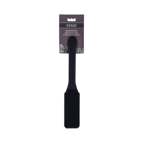 Heighten their anticipation with The Edge Pins & Needles Silicone Paddle and transform impact into art. Featuring a flexible silicone head lined with fine, needle-like silicone bristles, it delivers a concentrated, prickling sting that awakens the skin and heightens every nerve. Each swing balances control and cruelty, creating waves of sensation that linger long after the strike. The metal-reinforced, insertable handle delivers power, stability, and a satisfying versatility that transitions effortlessly from impact to indulgence. Crafted from 100% body-safe silicone, it''s built for players who crave texture, tension, and control that goes beyond the ordinary. 100% body-safe silicone exterior Metal reinforced, insertable handle for control and versatility Silicone ''pins & needles'' head for a uniform, nerve-awakening intensity Materials: 51% Iron Alloy, 49% Silicone
