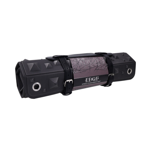 Endure the Pressure. Embrace the Power. The Edge Spike Punishment Mat turns endurance into artful control. This firm foam mat features uneven rows of pyramid spikes that rise and fall in height, creating varied pressure points that challenge comfort and command stillness. Kneel, sit, or lie across its surface, the longer you remain, the deeper the pressure builds, transforming restraint into obedience and discomfort into devotion. Each corner is fitted with silver grommet holes for use with cuffs or rope, keeping the submissive securely in place as intensity mounts. When the scene is over, the mat rolls up neatly for storage in its black faux leather, dual-buckled holster. Built to test endurance and amplify control, it''s the ultimate tool for posture and pressure play. 24" × 16" foam mat with three varied pyramid heights for progressive pressure play Corner grommet holes compatible with cuffs or rope for secure restraint Wipes clean and rolls up for easy storage in black faux leather buckled holster Materials: 85% EVA, 10% PU, 5% Steel