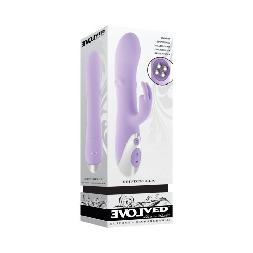 Find your own Spinderella story with this 3-motor dual vibe that turns personal pleasure into a world of fantasy. The gently swelling main shaft vibrates and rotates with 4 beaded nubs on each side of its center for an extraordinary feeling that leaves you exhilarated and satisfied. But that''s not the only trick up Spinderella''s sleeve. It''s also got a double-eared bunny with its own powerful motor that''s flexible to move with your body. You''ll forget all about the ball with Spinderella on your nightstand – complete with shimmering silver chrome detail. 10 vibration speeds & patterns 3 spinning speeds 3 motors, spinning controlled separately Insertable length 5.25", Insertable diameter 1.62" Made from phthalate & latex-free silicone Waterproof IXP-5 USB to magnetic cable included