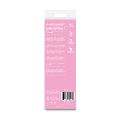 Peony by Pretty in Pink – A flexible G-spot vibrator with a soft silicone body and ergonomic handle for effortless exploration. Gently curved and easy to position for perfect pressure. Rechargeable. Waterproof. Suitable with all lubricants. 3 speeds / 6 functions. Product Weight: 10.16 (oz) Product Dimensions: 7.8 x 1.46 x 1.61 (Inches) Package Dimensions: 10.51 x 3.43 x 2.09 (Inches) Insertable Dimensions: 4.37 x 1.34 (Inches) Product Material: Silicone